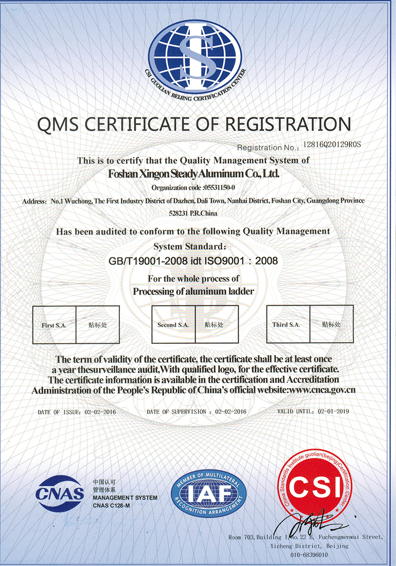 Los productos de xingon se construyen para cumplir o exceder todo el GB/ANSI/EN131/as aplicable NZS. De hecho, suministrar el equipo más seguro posible es nuestra máxima prioridad.
