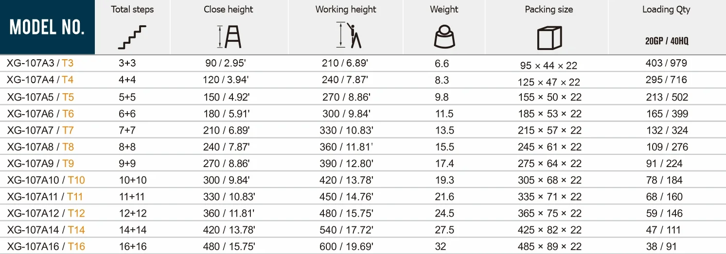 XG-107A/T 【FIBRE DE VERRE】 Échelle double face
