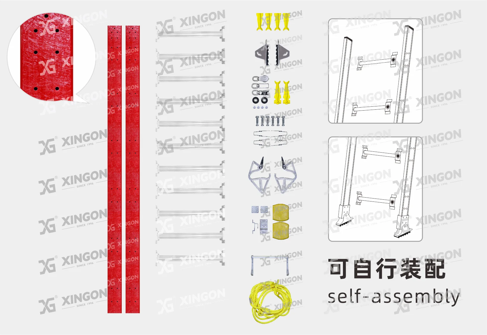 Foshan Xingon est major dans les échelles d'aluminium et de fibre de verre. Nous sommes fournisseur d'échelle professionnelle en Chine. Ci-dessous l...