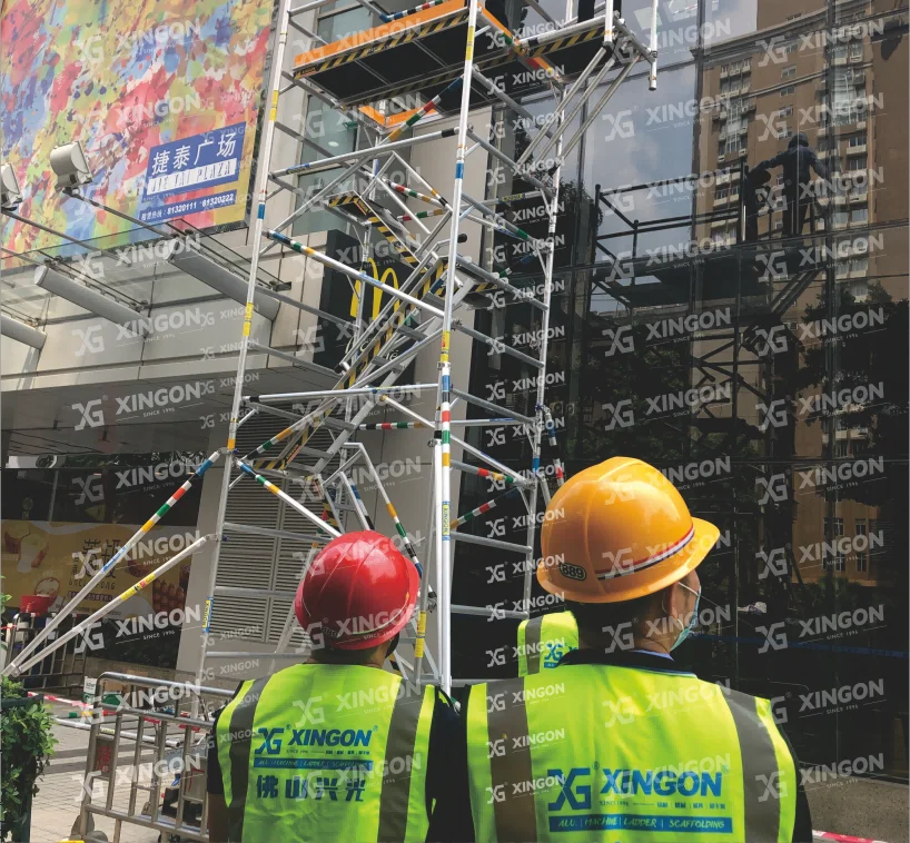 Les échafaudages en aluminium XINGON sont fabriqués à partir de matériaux entièrement en alliage d'aluminium, utilisant des matériaux en aluminium aéronautique 6082-T6 et 6061-T6. La conception du produit est conforme à la certification internationale de l'UE EN 1004-1:2020 et le produit a obtenu la certification de sécurité du groupe SGS en Suisse. Les produits XlNGON sont assurés par Ping An Property Insurance Company de Chine. Notre société a obtenu la certification internationale du système de gestion de la qualité IS0 9001 : 2015. garantissant de manière globale la stabilité des performances et la supériorité des produits en aluminium XlNGON, et assurant la sûreté et la sécurité de votre construction.