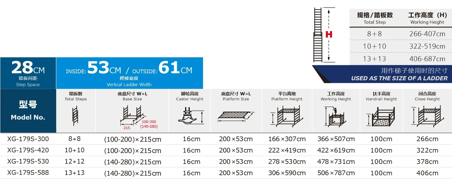 XG-179S 【ALUMINIUM】 Plate-forme mobile de levage d'échelle