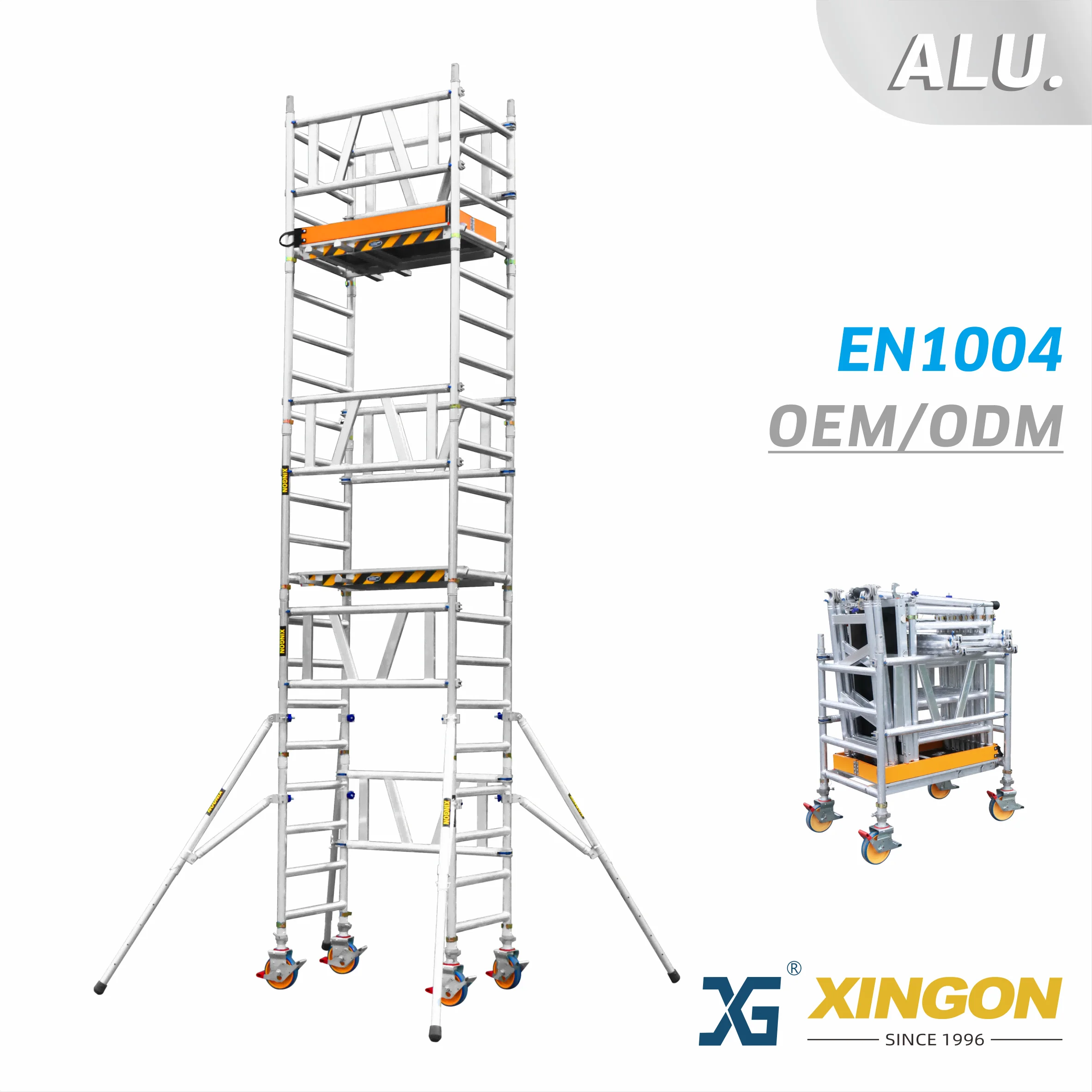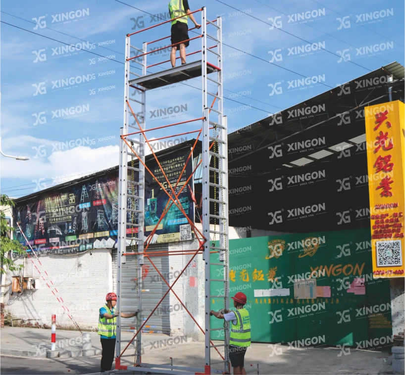 Les échafaudages en aluminium XINGON sont fabriqués à partir de matériaux entièrement en alliage d'aluminium, utilisant des matériaux en aluminium aéronautique 6082-T6 et 6061-T6. La conception du produit est conforme à la certification internationale de l'UE EN 1004-1:2020 et le produit a obtenu la certification de sécurité du groupe SGS en Suisse. Les produits XlNGON sont assurés par Ping An Property Insurance Company de Chine. Notre société a obtenu la certification internationale du système de gestion de la qualité IS0 9001 : 2015. garantissant de manière globale la stabilité des performances et la supériorité des produits en aluminium XlNGON, et assurant la sûreté et la sécurité de votre construction.
