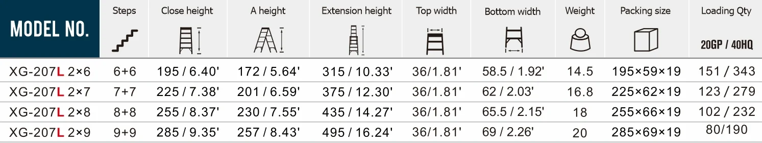 XG-207L 【FIBRE DE VERRE】 Échelle à rallonge