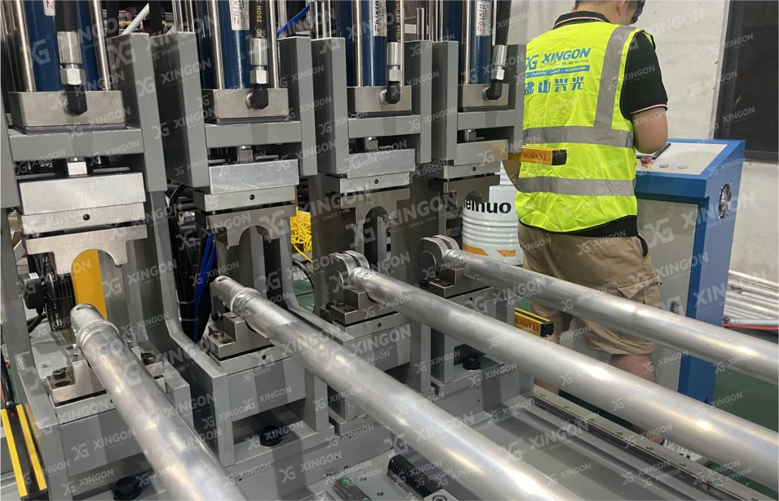 La machine de moulage sous pression de profilés d'échafaudage de la série XG-878 produite par notre usine est spécialement conçue et développée pour les pairs de l'industrie, utilisée dans le processus d'assemblage de produits d'échafaudage, et les machines réalisent un flux de travail intégré. Augmentez considérablement l'efficacité de la production du produit, ainsi que la stabilité du processus de production du produit, de sorte que la production et l'industrialisation de la transformation du produit réduisent considérablement la perte de main-d'œuvre. |