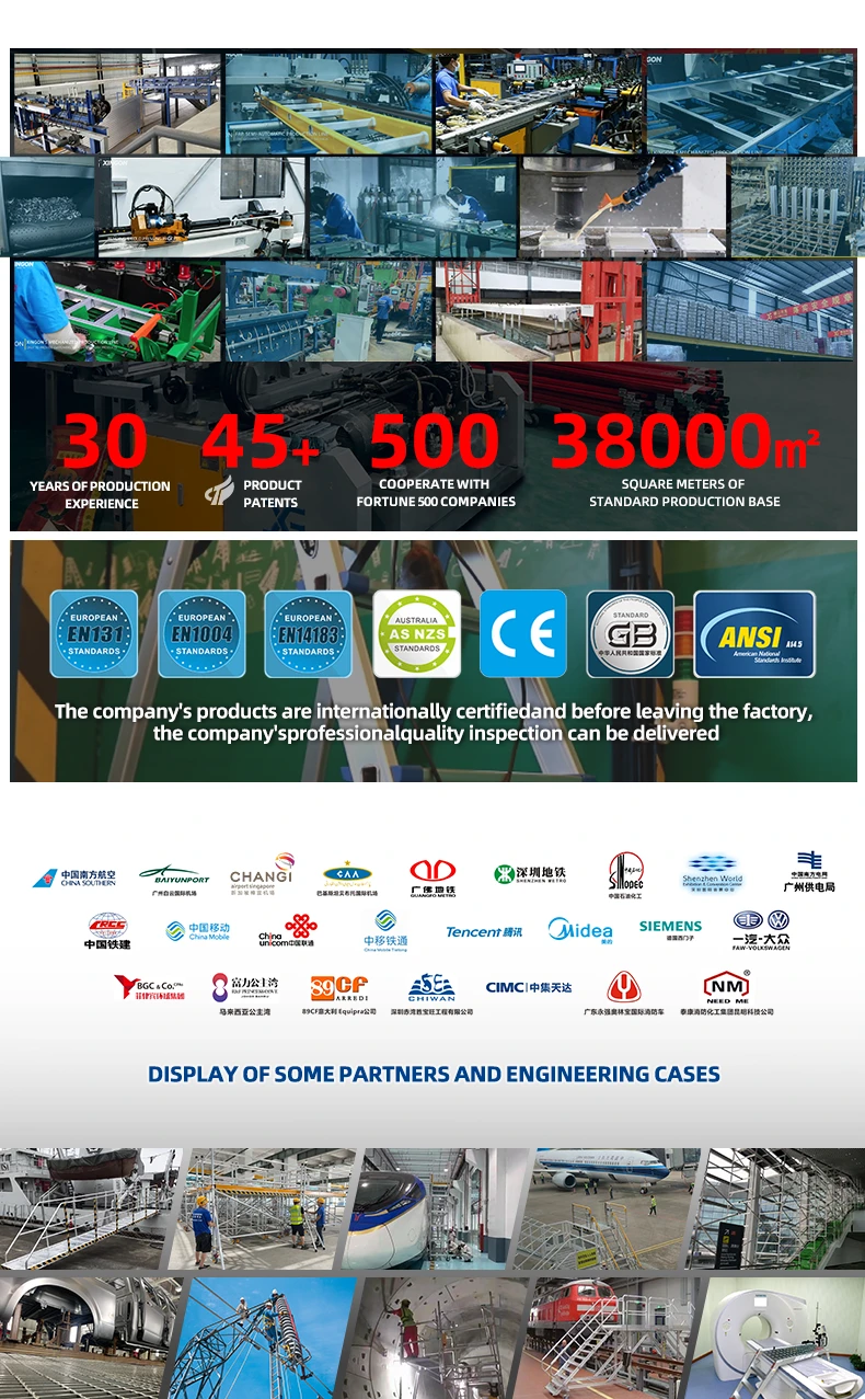 Nos principaux produits comprennent des profilés en aluminium, des échelles en aluminium, des échelles en fibre de verre, des échafaudages en aluminium, des produits en aluminium personnalisés, des machines personnalisées, etc.