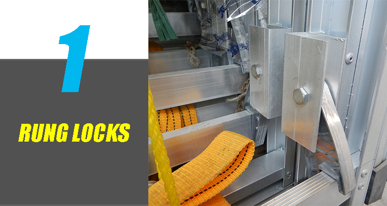 Les échelles d'extension latérales doube en aluminium ont une cote de service de 150. Les serrures robustes à ressort fonctionnent sans heurts.