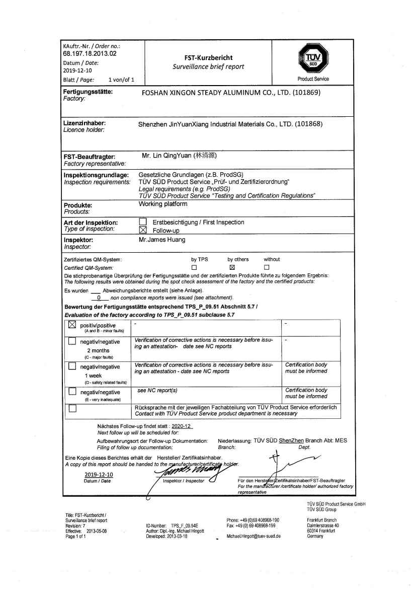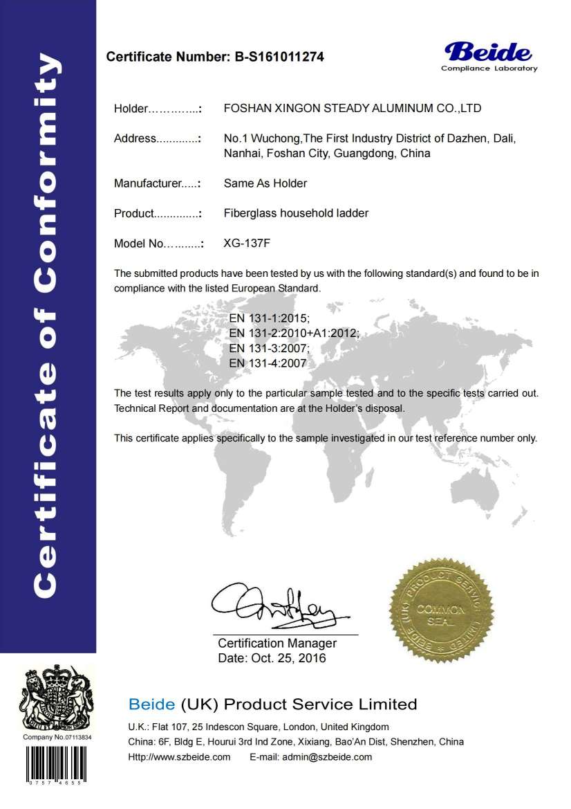 Foshan Xingon is major in aluminum and fiberglass ladders. We are professional ladder supplier in China. Below is 2017-11-18 delivery details: