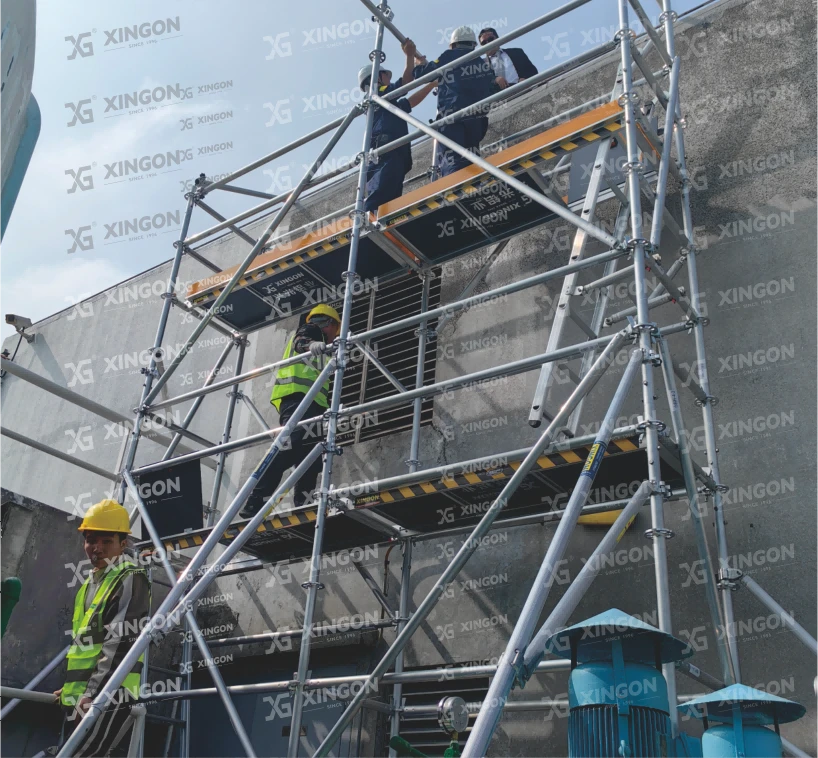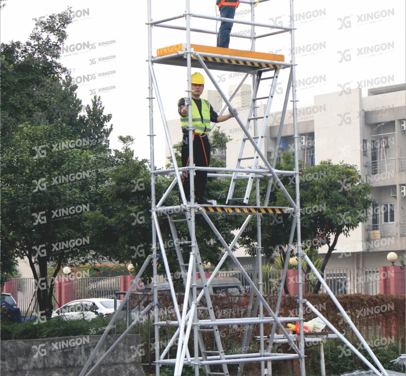 XINGON aluminum scaffolding are made of all aluminum alloy material, using aviation aluminum materials 6082-T6 and 6061-T6.The product design complies with international EU certification EN 1004-1:2020, and the product has obtained safety certification from SGS Group in Switzerland. XlNGON products are insured by Ping An Property Insurance Company of china. Our company has obtained the IS0 9001:2015 international quality management system certification. comprehensively ensuring the performance stability and product superiority of XlNGON aluminum products, and providing safety and security for your construction.