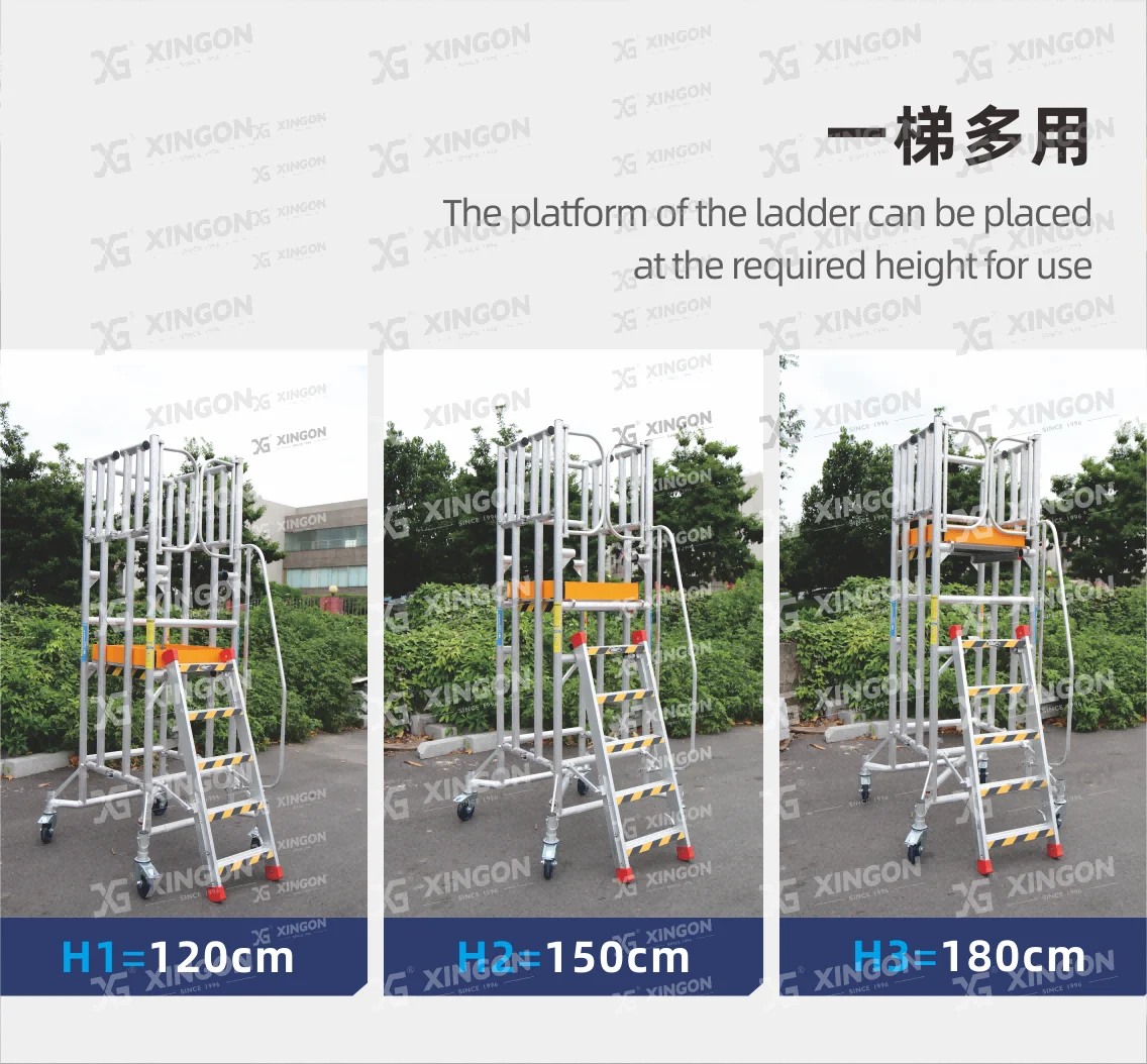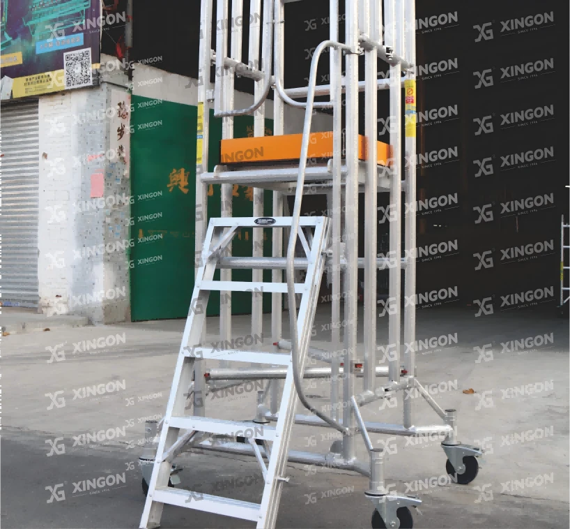 XINGON aluminum scaffolding are made of all aluminum alloy material, using aviation aluminum materials 6082-T6 and 6061-T6.The product design complies with international EU certification EN 131, and the product has obtained safety certification from SGS Group in Switzerland. XlNGON products are insured by Ping An Property Insurance Company of china. Our company has obtained the IS0 9001:2015 international quality management system certification. comprehensively ensuring the performance stability and product superiority of XlNGON aluminum products, and providing safety and security for your construction.