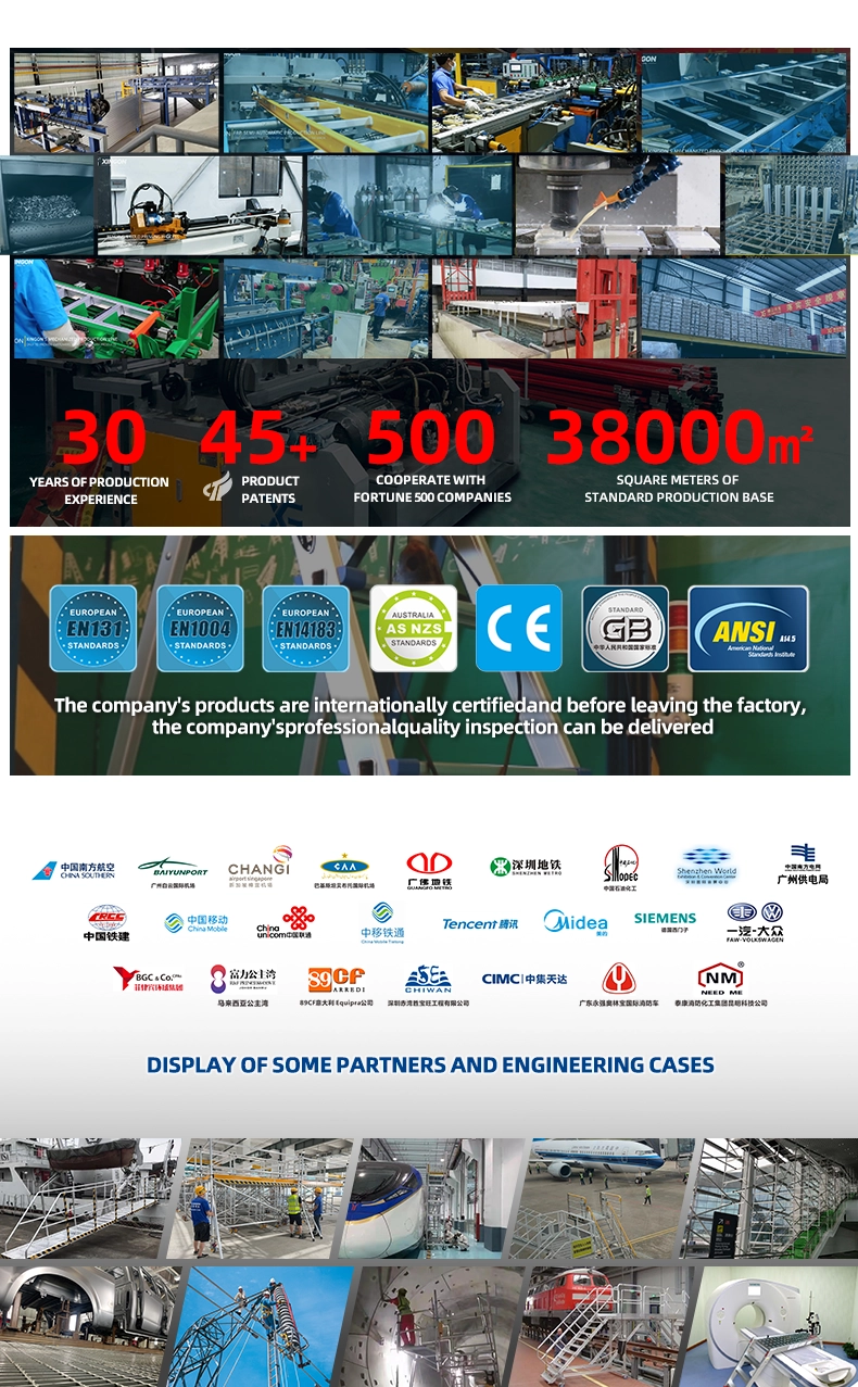 We have a ISO9001:2015-certified factory covering an area of 25,000 square meters equipped with advanced welding, punching, drilling and packaging machines. This helps us achieve a monthly capacity of 50 thousand ladders, 75% of which are for export. Our delivery time for goods is 10-25 days.