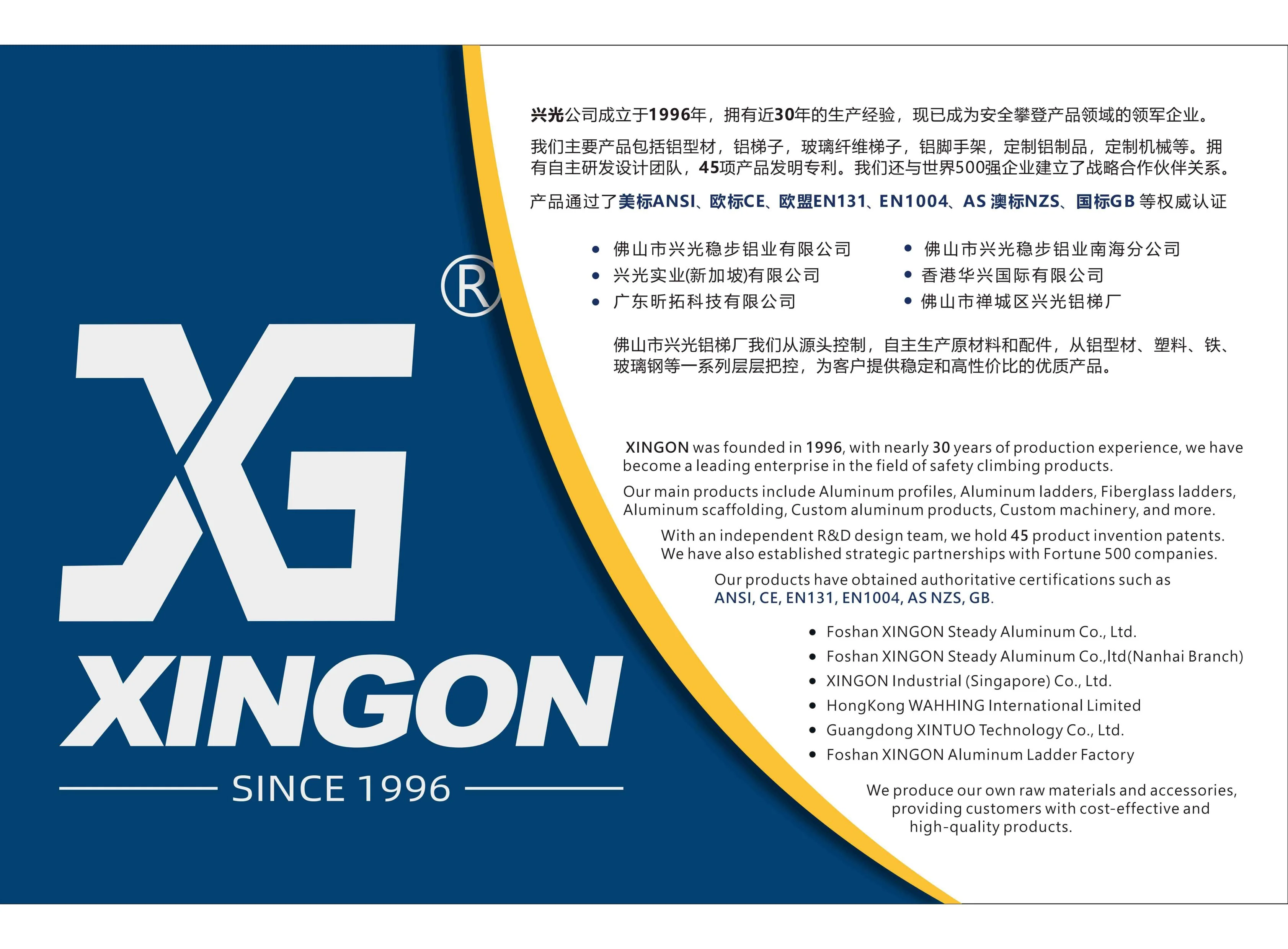 Foshan Xingon is major in aluminum and fiberglass ladders. We are professional ladder supplier in China. Below is 2017-11-18 delivery details: