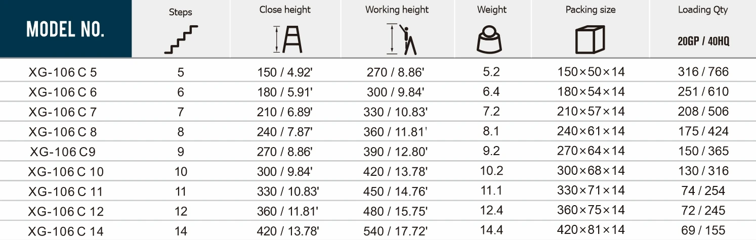 XG-106C 【АЛЮМИНИЙ】 Односторонняя лестница
